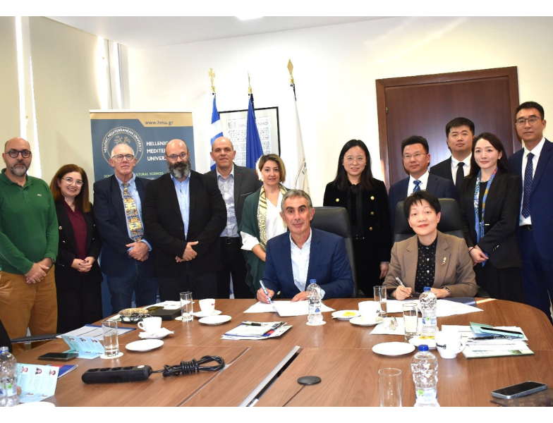 On Monday, 24 November 2025, the signing ceremony for the establishment of the Hellenic–Chinese Research Centre for Tourism and Cultural Heritage took place in the Meeting Hall of the Rectorate of the Hellenic Mediterranean University (HMU), at the Heraklion Campus. The Agreement was signed by the Rector of HMU, Prof. Nikolaos Katsarakis, and, on behalf of Ningbo University of the People’s Republic of China, Ms Zhang Yue, Chief Inspector of the Department of Education of Zhejiang Province and head of the Chinese delegation.
