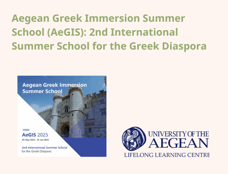 Summer School Information: PERIOD: 21/06/2025 – 26/08/2025 CREDITS ECTS: 3.00 LOCATION: Syros Scientific Responsibility: Panagiotis Kyriakoulakos INITIAL COST: 200 € For more information: https://summer-schools.aegean.gr/XARTS2025