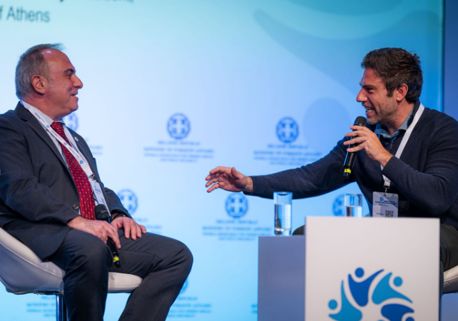 Study in Greece played a central role in this year’s iteration as well. Supported by the Secretary General for Greeks Abroad and Public Diplomacy at the Ministry of Foreign Affairs, Maira Myrogianni, the President of Study in Greece, Professor Christos Michalakelis, joined Stefanos Gandolfo – Director of the Columbia Global Center and member of the Study in Greece Advisory Board – for an engaging fireside chat titled “Internationalizing Higher Education and Engaging the Youth of the Diaspora”. What was originally planned as a concise 20-minute exchange quickly evolved into a lively, hour-long conversation, with young Greeks from more than 30 countries actively contributing and continuing the discussion informally even after the session concluded.